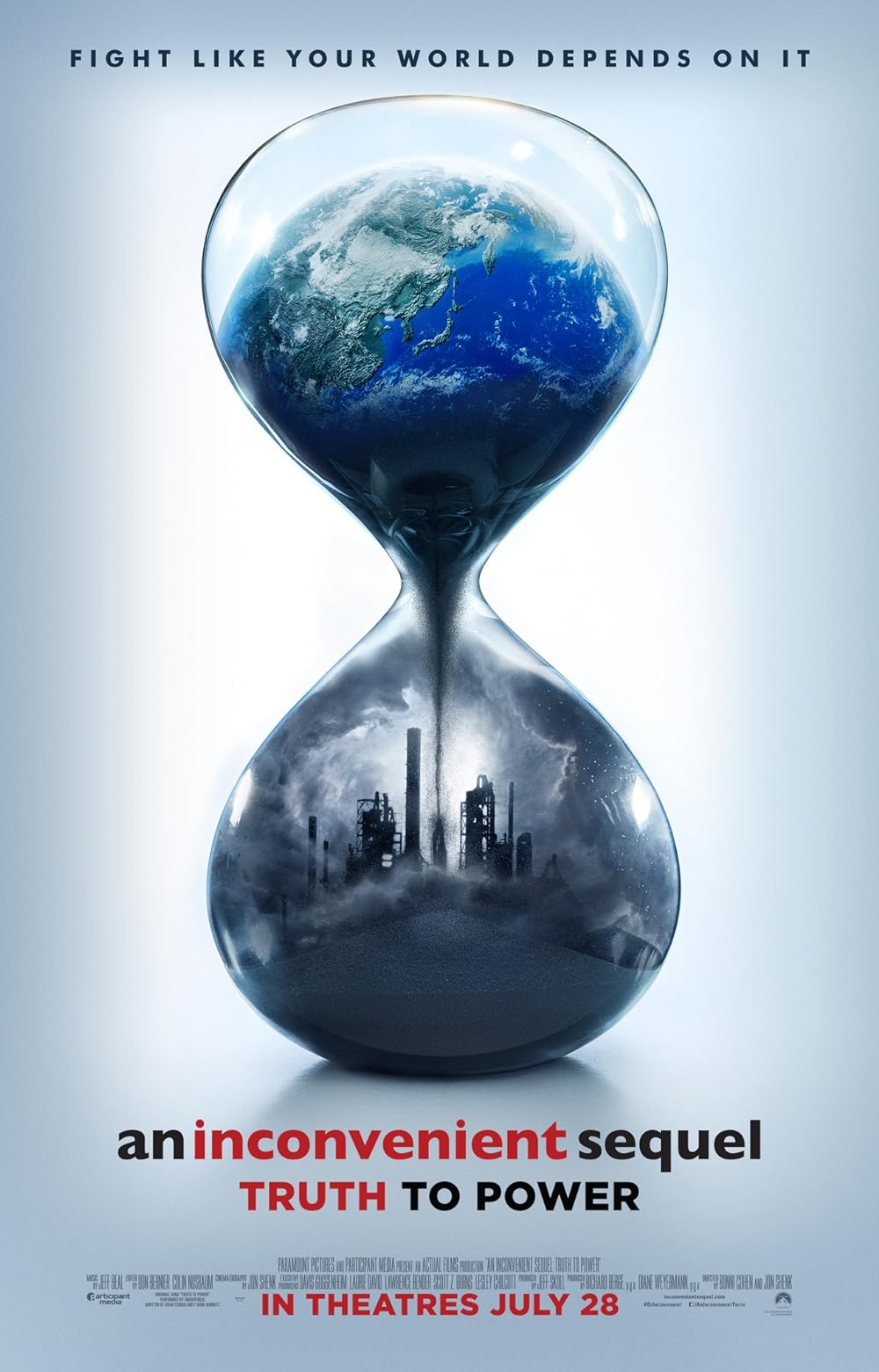 An Inconvenient Sequel poster of an hourglass with the Earth in the top half